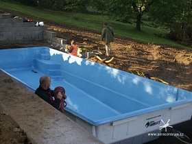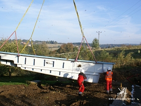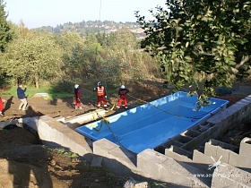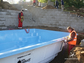 Vrtulník usadil do stráně pod rodinný dům bazén o rozměrech 11×4 m.