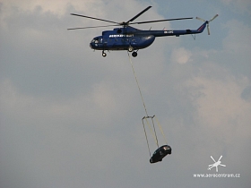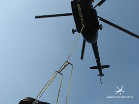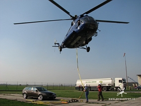 Zkouška a předvedení přepravy automobilu v podvěsu vrtulníku a jeho usazení na stanovené místo pro Event Marketing firmy Porsche.