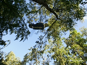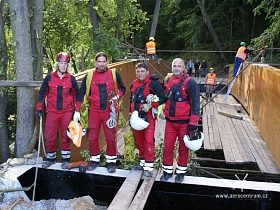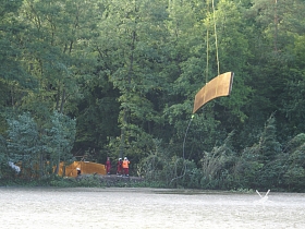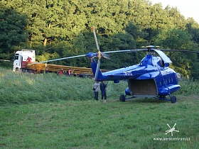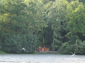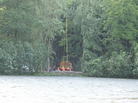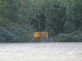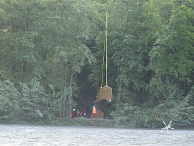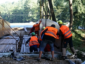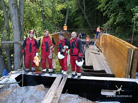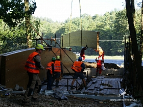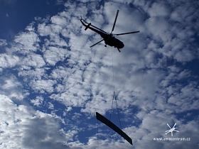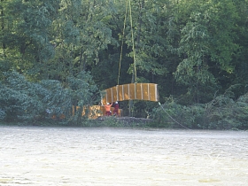 4 nosníky o délce 19 m a váze 2,6 tuny byly vrtulníkem osazeny na patky budovaného mostku